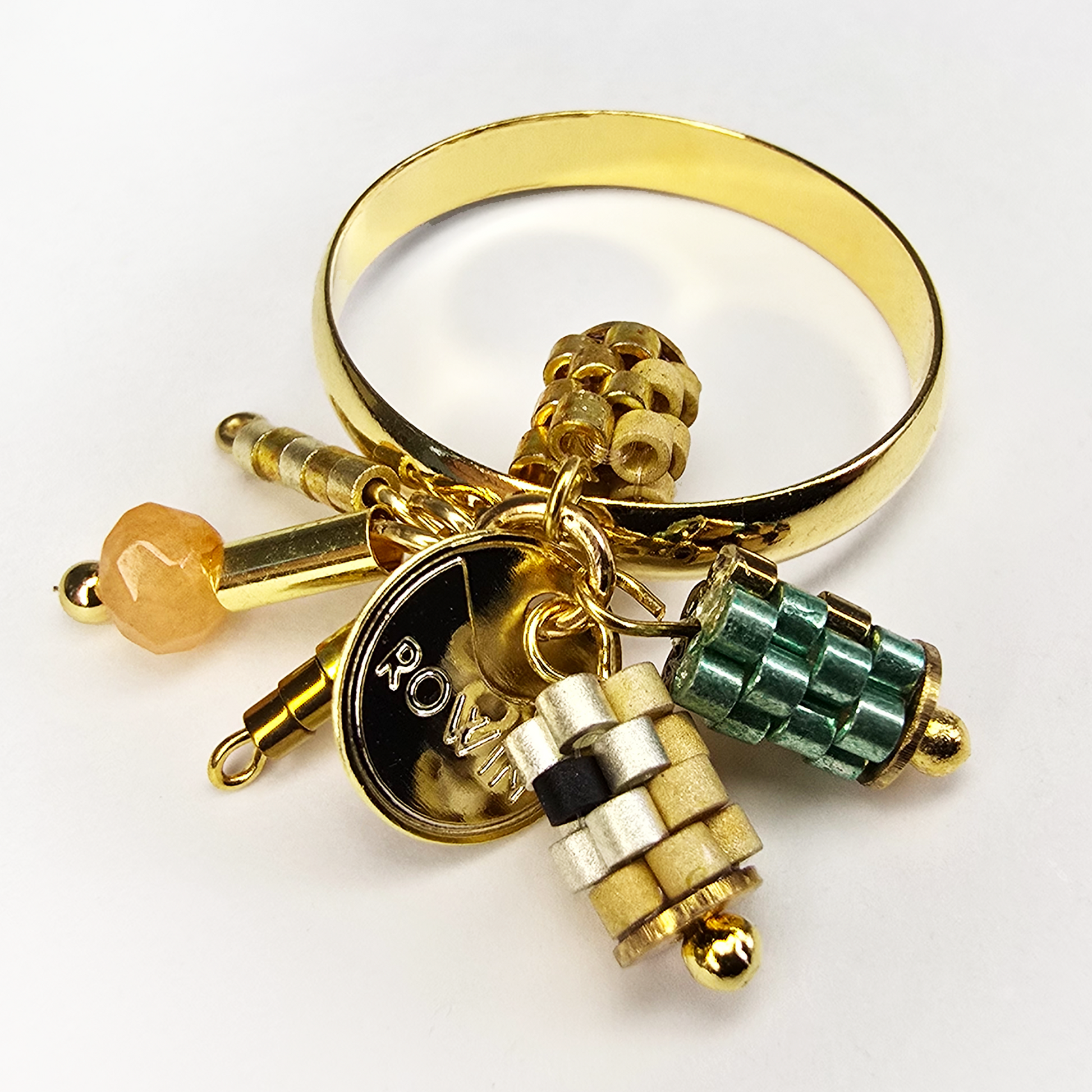 Sencillez y majestuosidad en una sola pieza. El anillo Solenne es un homenaje a la belleza atemporal, inspirado en las formas y texturas doradas de Klimt. Elaborado manualmente con cuentas Miyuki y detalles bañados en oro de 18k, es un símbolo de sutil sofisticación.